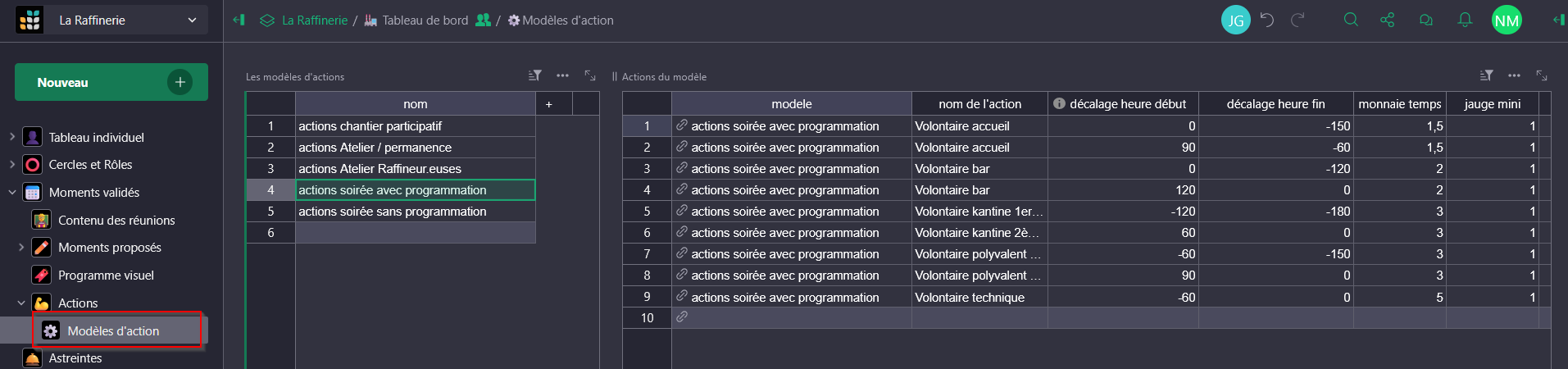 Modèle d'actions